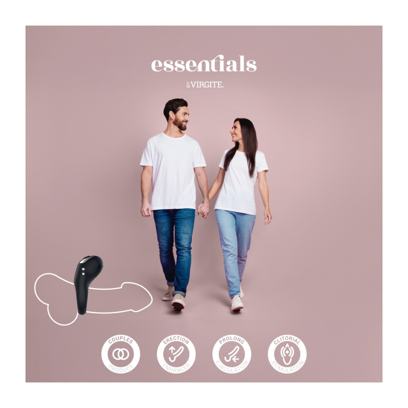 Anel vibratório recarregável via cabo USB com diferentes velocidades e intensidades.